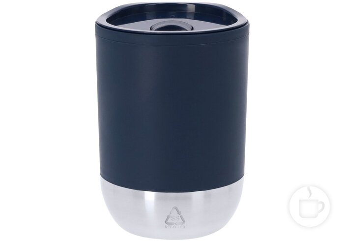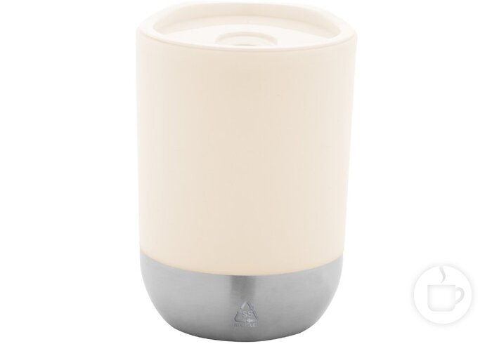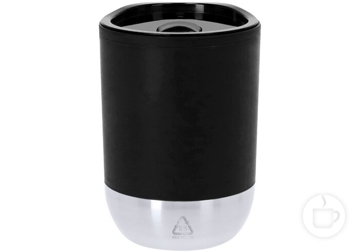 Plastikinis kelioninis puodelis dvigubomis sienelėmis perdirbto plieno dugnu